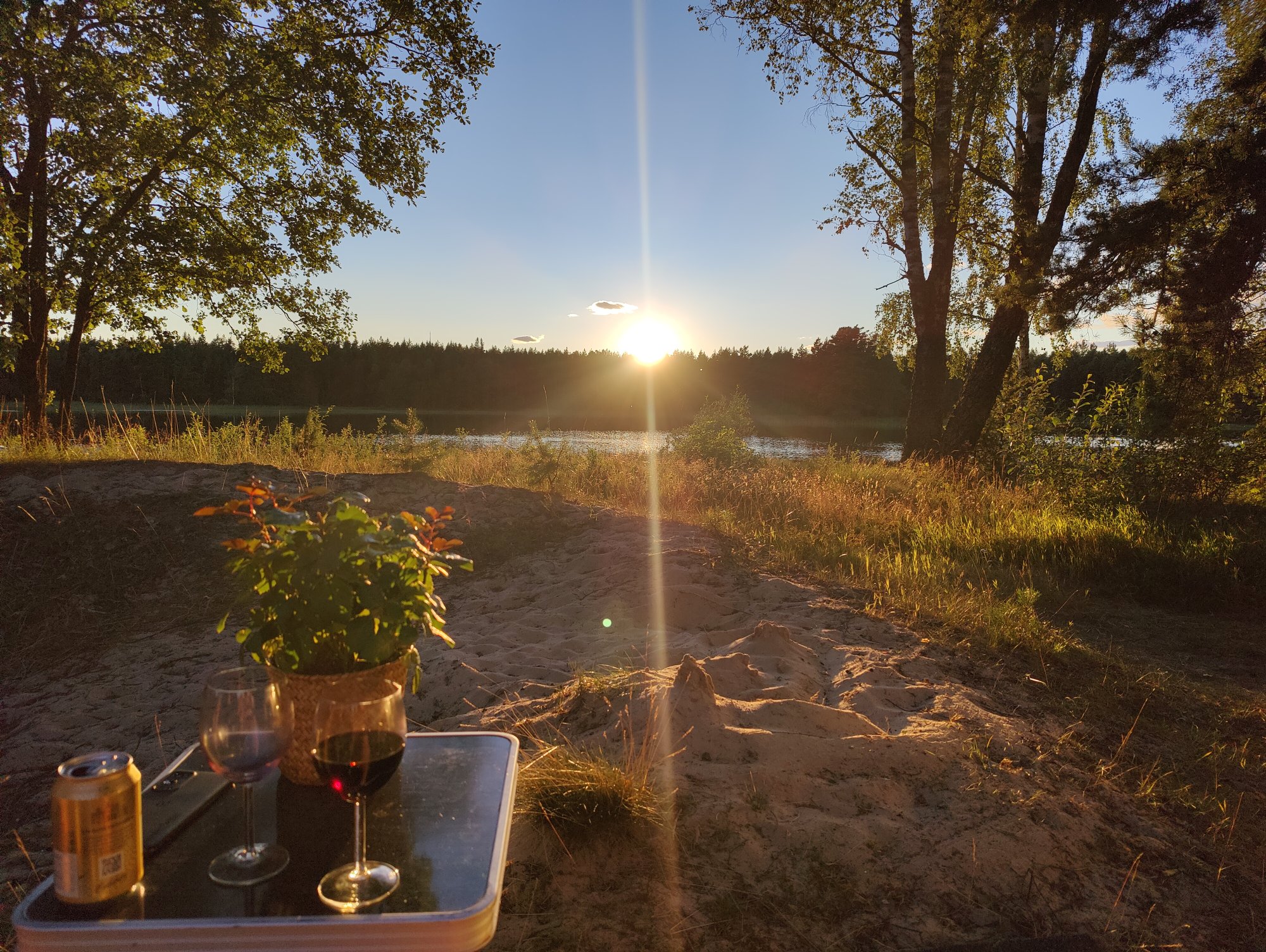 Vi var inte framme förrän ca 18:15 så kvällen avnjöts i kvällssolen med hamburgare och gott i glasen.