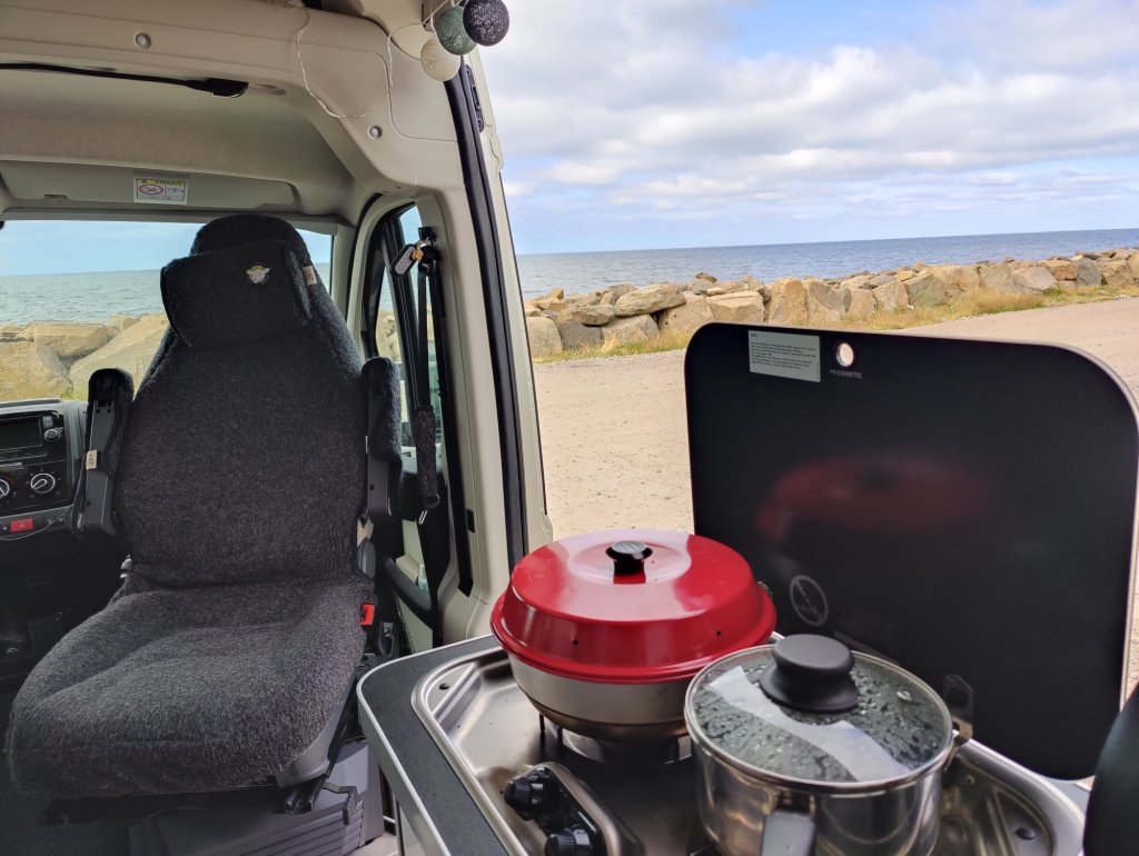Efter ett besök på Engelsons så hamnade ute vid Lövstaviken, ställplatsen var full så vi åkte ut till vindsnurrorna och parkerade i ett U.
