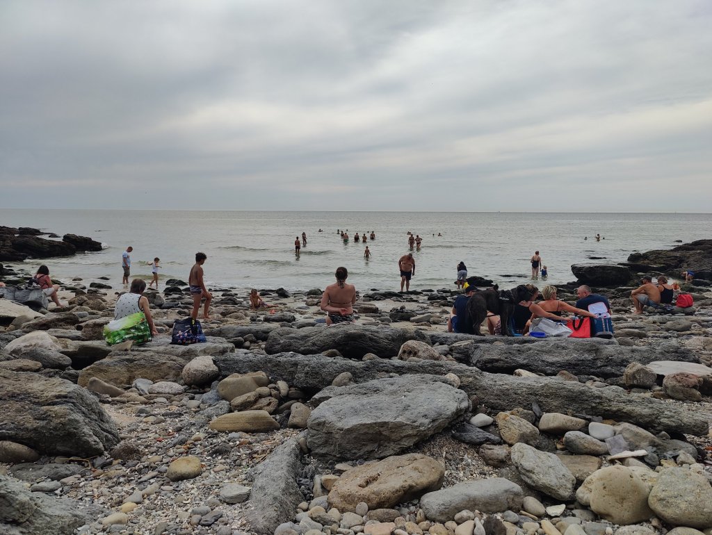 När vattnet drog ut och det var ebb, vilket frilade klipporna, då vallfärdade fransmännen ner med hinkar och håvar för att plocka musslor.