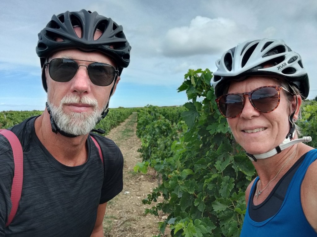 Så det var vår plan, en cykeldag. Totalt blev det 5,6 mil. Via små mysiga byar, genom saltutvinningar, vinodlingar mm.