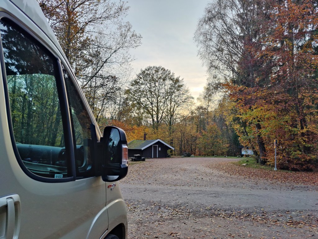 Sist vi var i Söderåsen testade vi en parkering vid Klåveröd men det var dålig internet teckning där så vi åkte vidare då. Men nu trotsade vi våra behov och parkerade ovanför sjön.