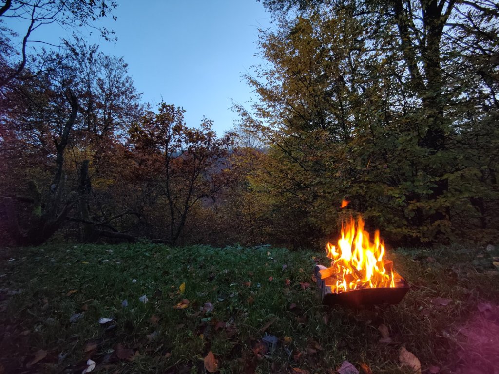 När vi väl klossat och kommit i våg blev det en kvällsbrasa.