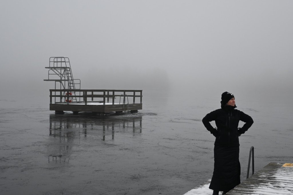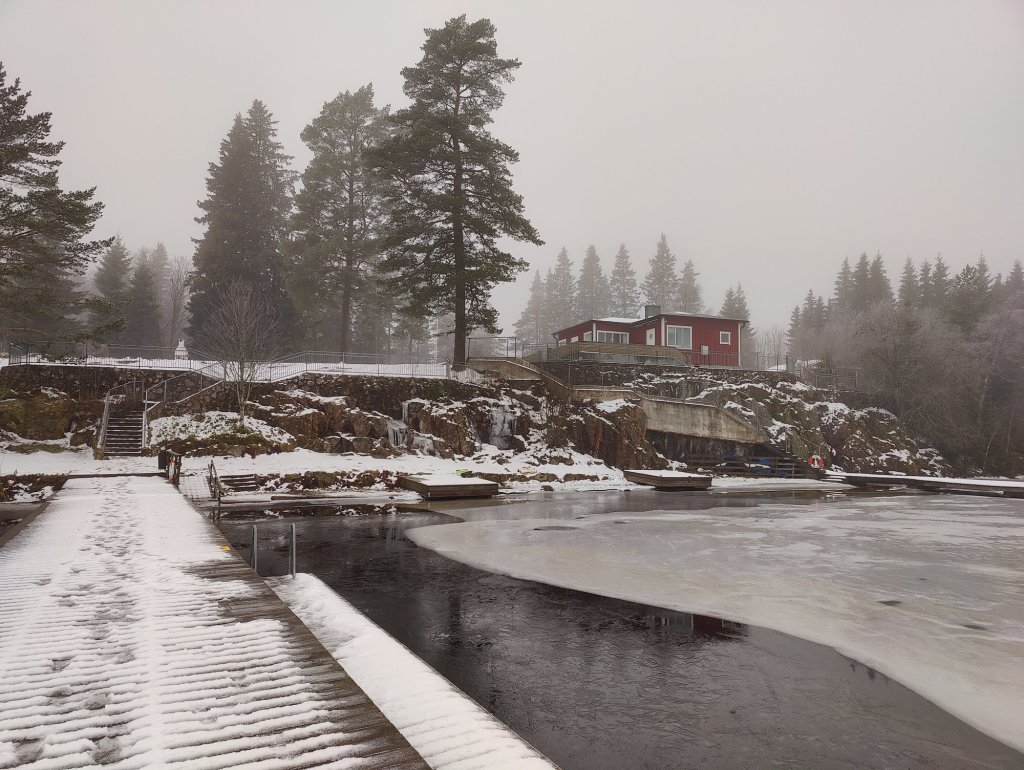 Platsen, som var en badplats låg ganska högt så det var nog inte så konstigt att det var massa snö. För att komma till sjön fick vi ta trappan ner.
