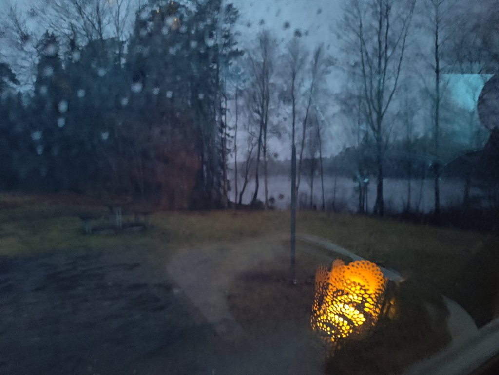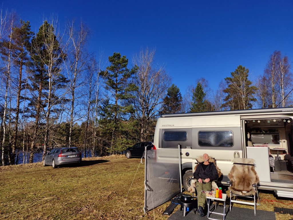 Ja ja vi valde ändå en ganska öppen plats där vi tyckte att vi hade marginaler från träden om dom skulle få för sig att falla. Självklart var jag nervös men när mörkret väl kom såg man ju inte träden svaja, kändes dock en del i bilen när det tog i och det hördes vill jag lova.