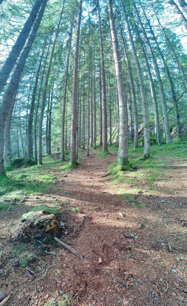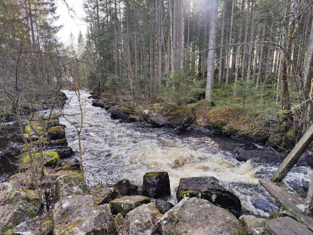 Slingan är riktigt trevlig faktiskt med varierande skog och natur, forsande vatten på sina ställen och sjönära.
