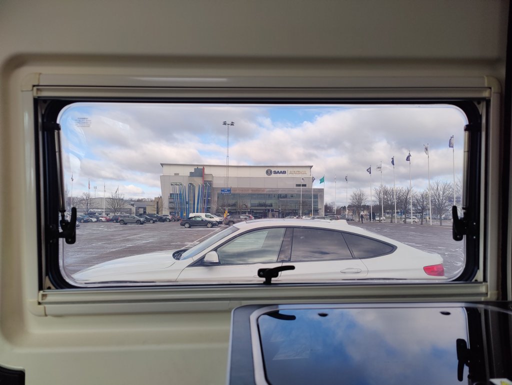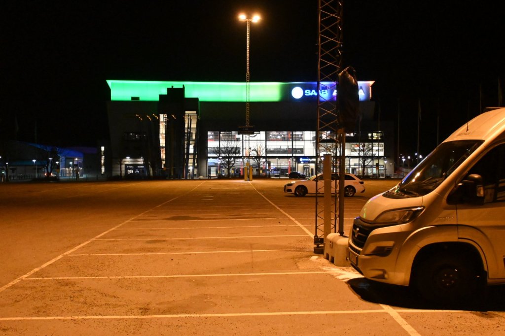 Först ett stopp hos Emelie för att lämna av lite grejer innan vi åkte för att parkera på Saab arena.
