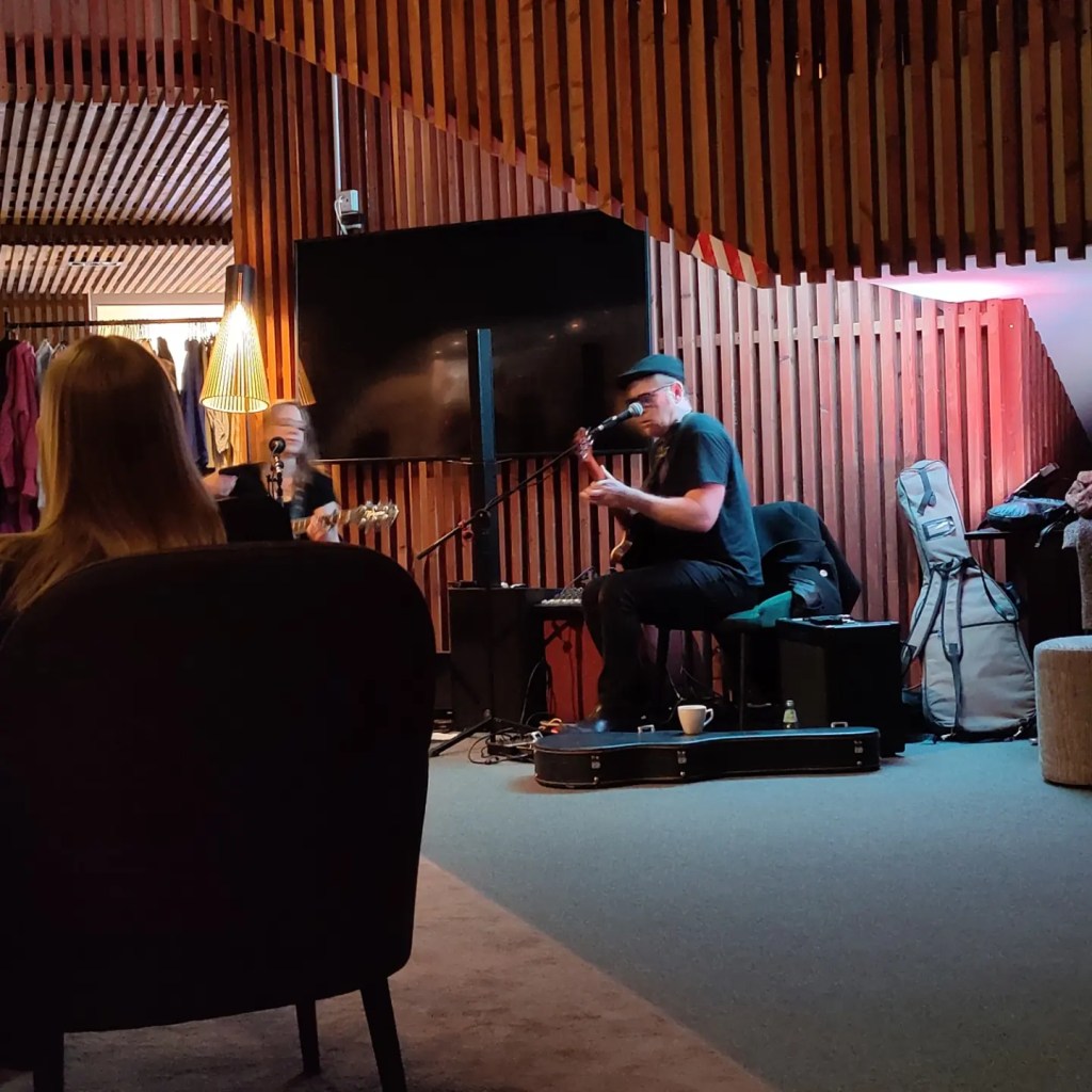 Mätta och goa satte vi oss sedan med en drink och lyssnade på lite underhållning.