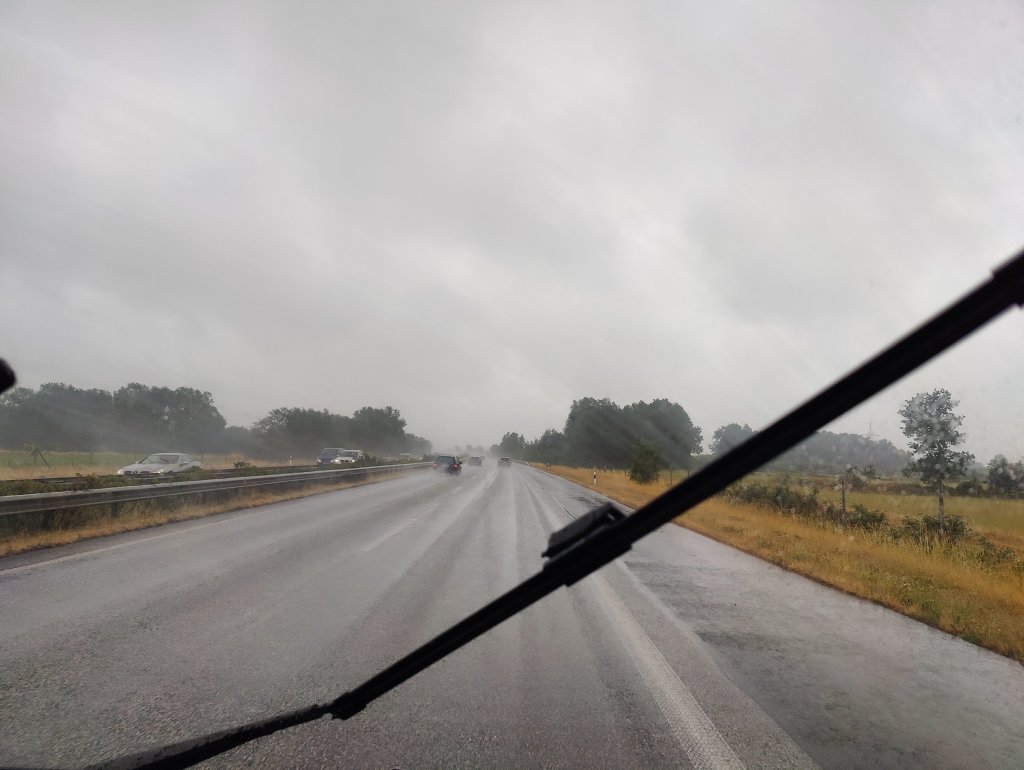 Dagen efter blev en resdag i regn. Vi stannade i Flensburg för att köpa med lite öl och vin innan vi tog oss an autobahn.