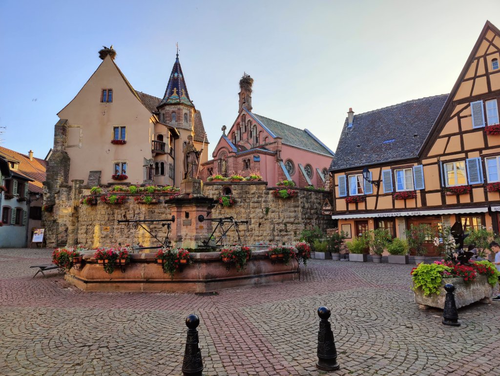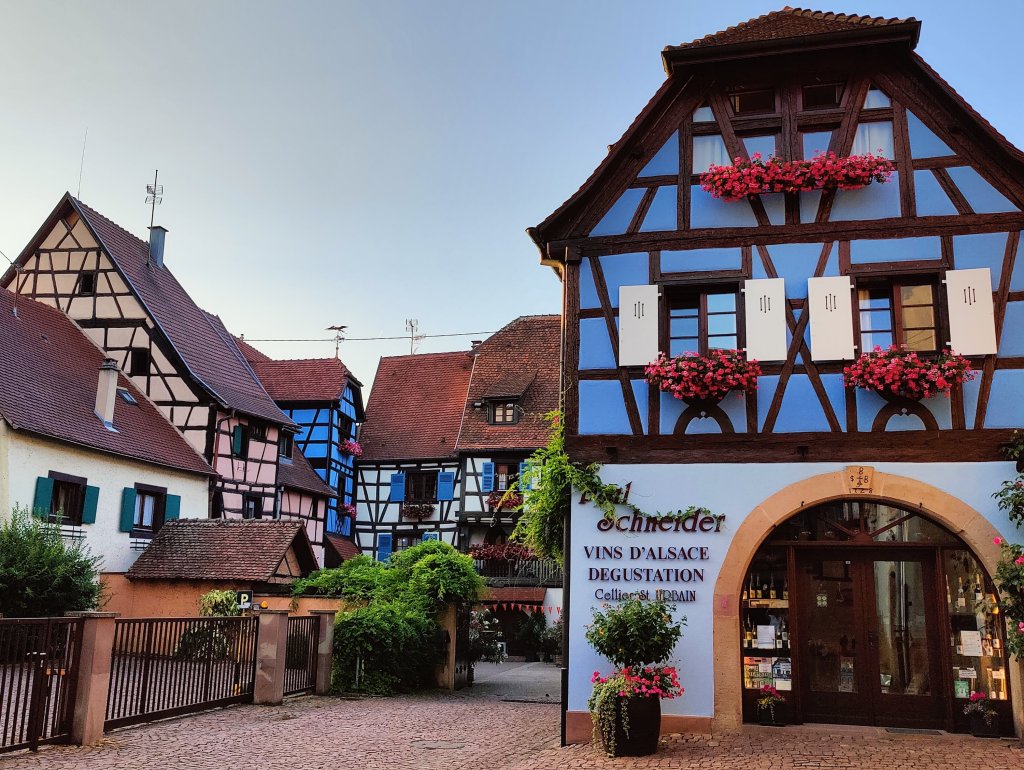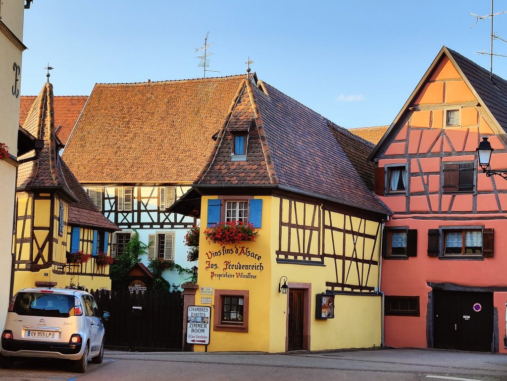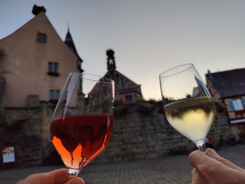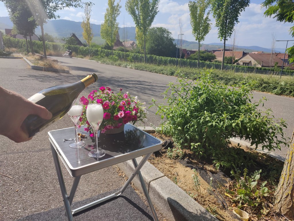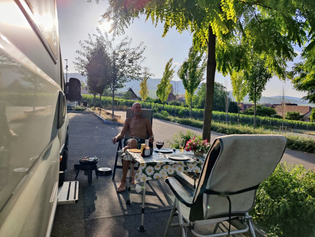 Dagen efter flöt på betydligt bättre utan några längre köstopp. Ca 60 mil hann vi med och landade i Eguisheim i Alsace. Här fann vi värmen igen och det kändes att vi kunde fira in semestern på allvar med lite bubbel.