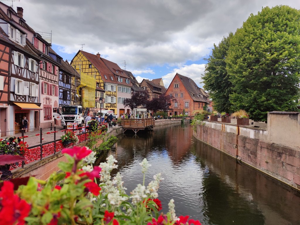 Idag blev det en varm löprunda bland vinrankorna på morgonen och efter en lätt lunch cyklade vi in till Colmar.