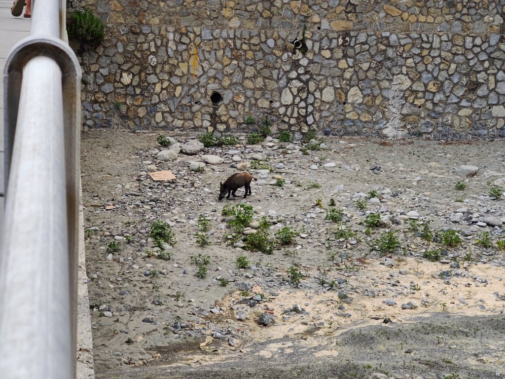 I den uttorkade flodbädden precis utanför campingen såg vi vildsvin härom kvällen. Lite olustigt men dom höll sig där.