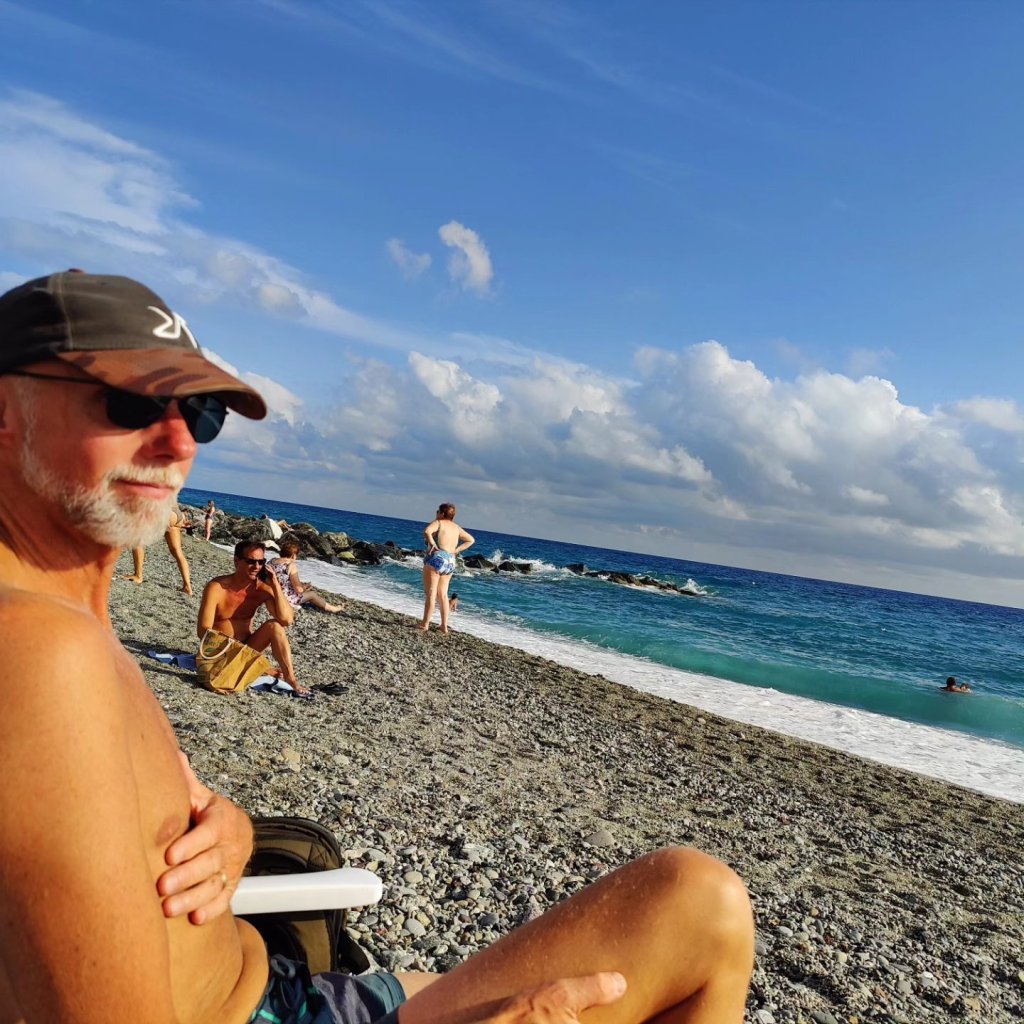 Efter vår morgonrunda packade vi ihop och målet var Ligurien. Peder kämpade på med sin onda rygg som han troligen fick efter cyklingen i Alcace. Jag är glad att han klarade av att köra.