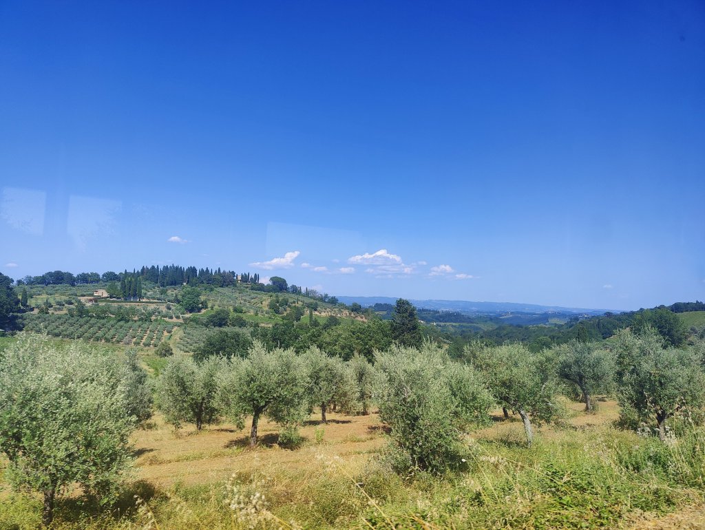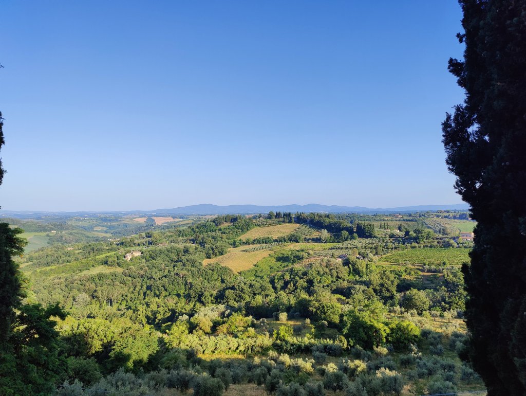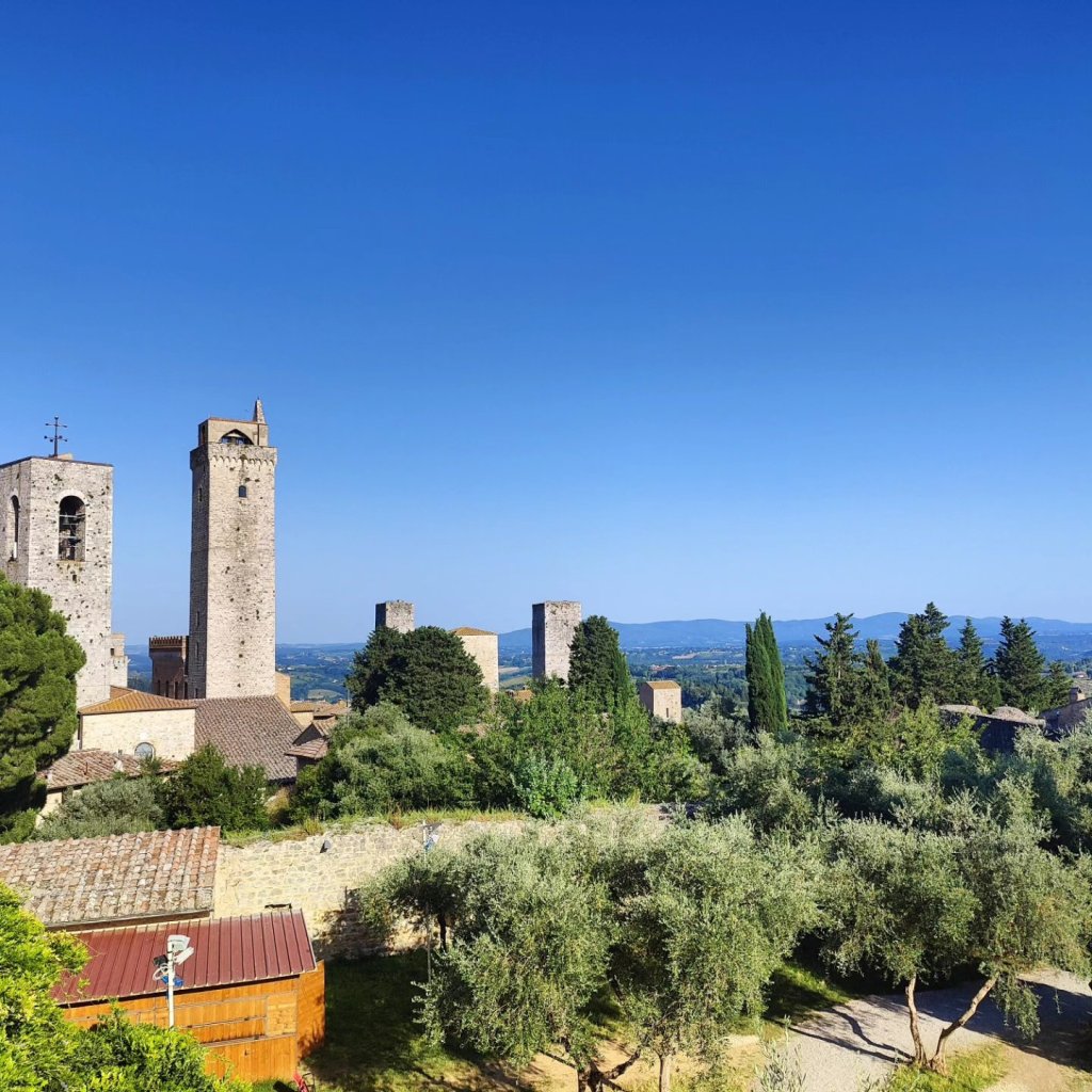 Här tog vi lite siesta innan vi skulle in och kolla på San Gimignano. Kroppen dröp av svett bara av att sitta stilla. Inte utan att vi saknade havet att svalka oss i.
