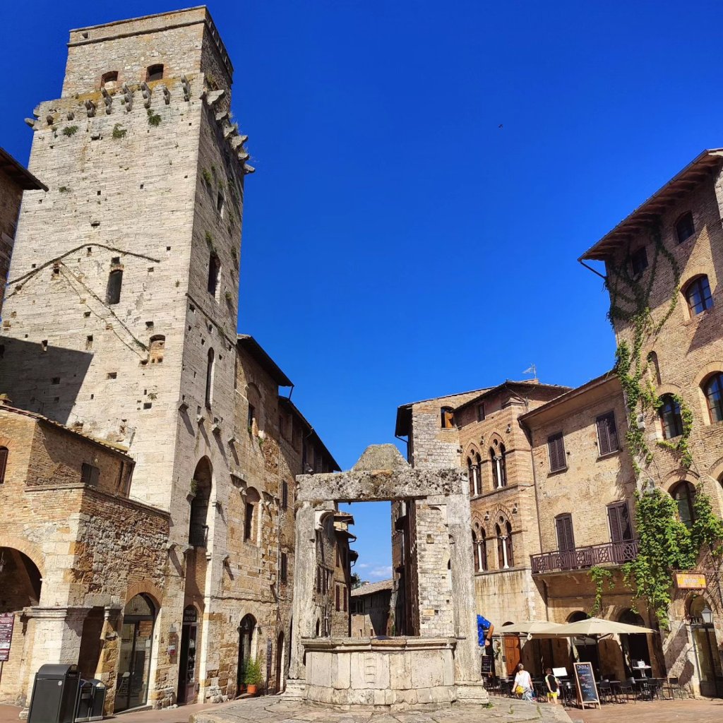 En fin och mysig gammal by. San Gimignano är berömt för sin medeltida arkitektur och unik för sitt bevarande av ett dussintal av sina tornhus.