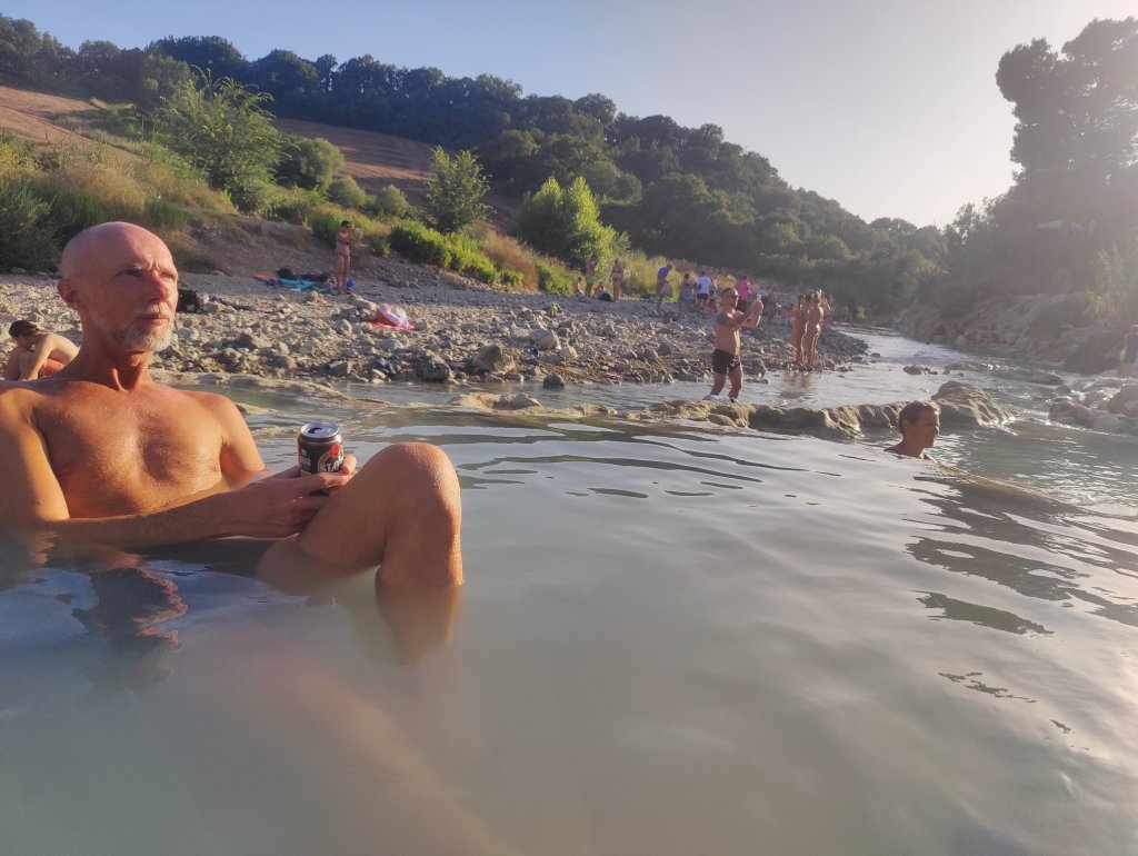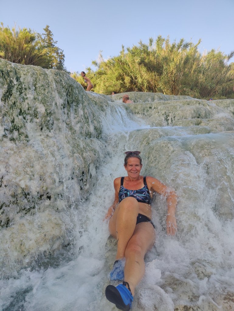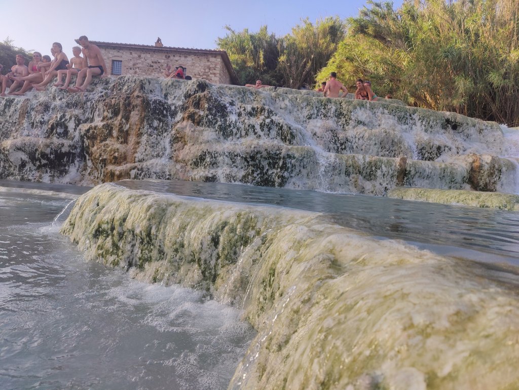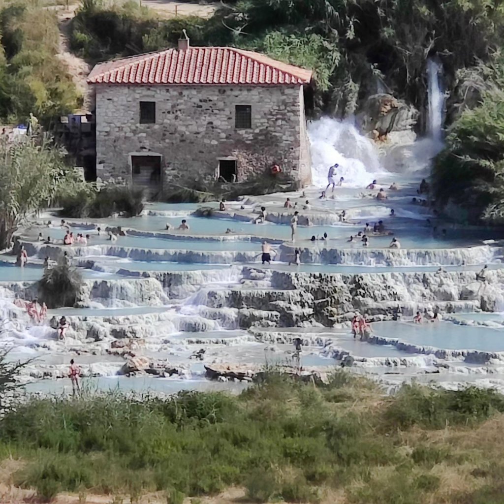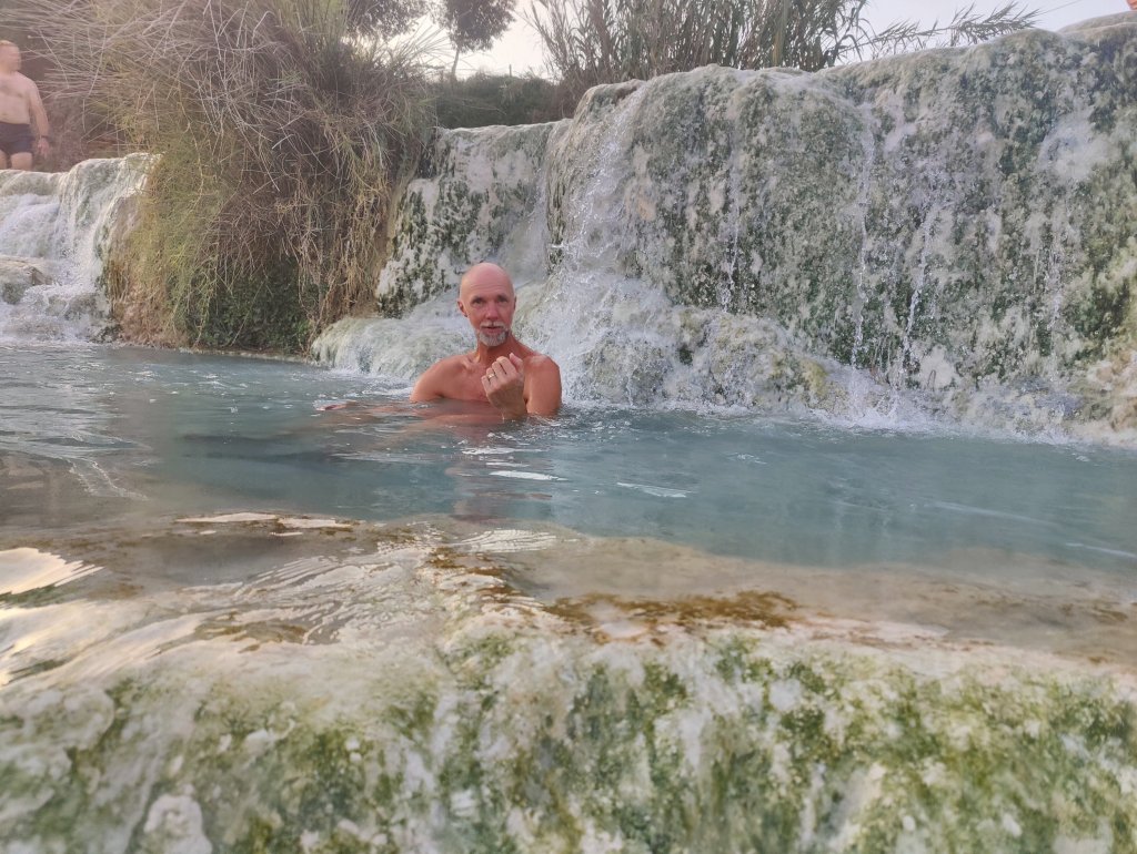 Cascate del Mulino-Hot Spring är ett ställe jag hittat hemifrån så nu i år när vi var nära var det självklart att vi skulle åka dit. Svavelvatten som kommer ur marken med en temperatur på 37,5 °C och skapar varma simbassänger