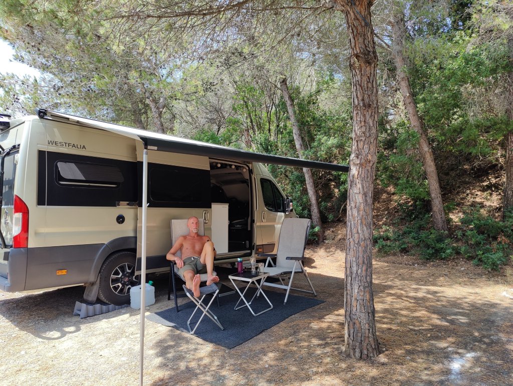 Vi hittade en ställplats som verkade bra i närheten av Grosetto. Men oj vad det blåste. Vi bytte plats men gick inte undkomma. Istället blev det stranden.