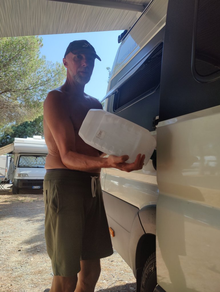 Här finns inga servicehus och bara en kran med dricksvatten. Peder fick ett träningspass då det inte gick att fylla dricksvatten på förra stället.