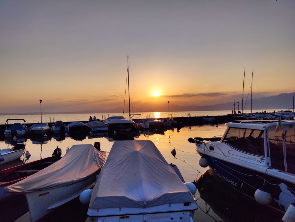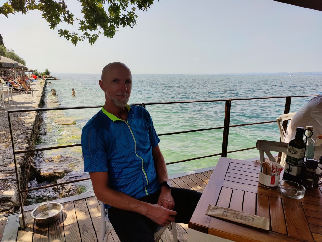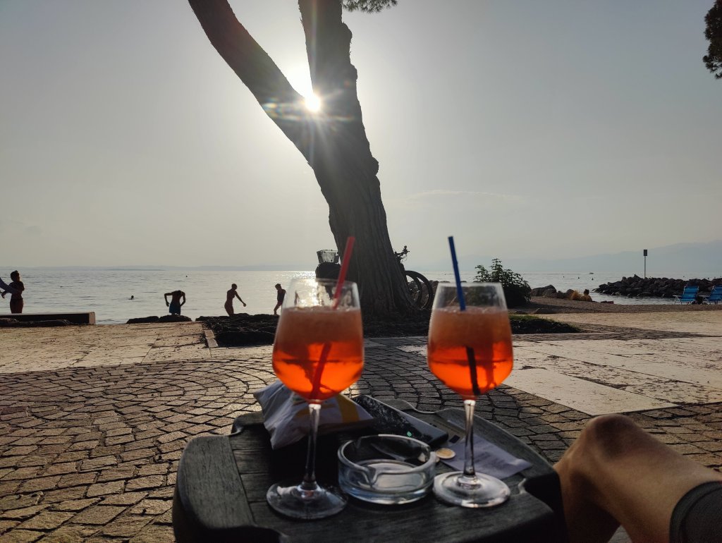 Sista kvällen vid Gardasjön blev vid stranden med en god Aperol i baren.