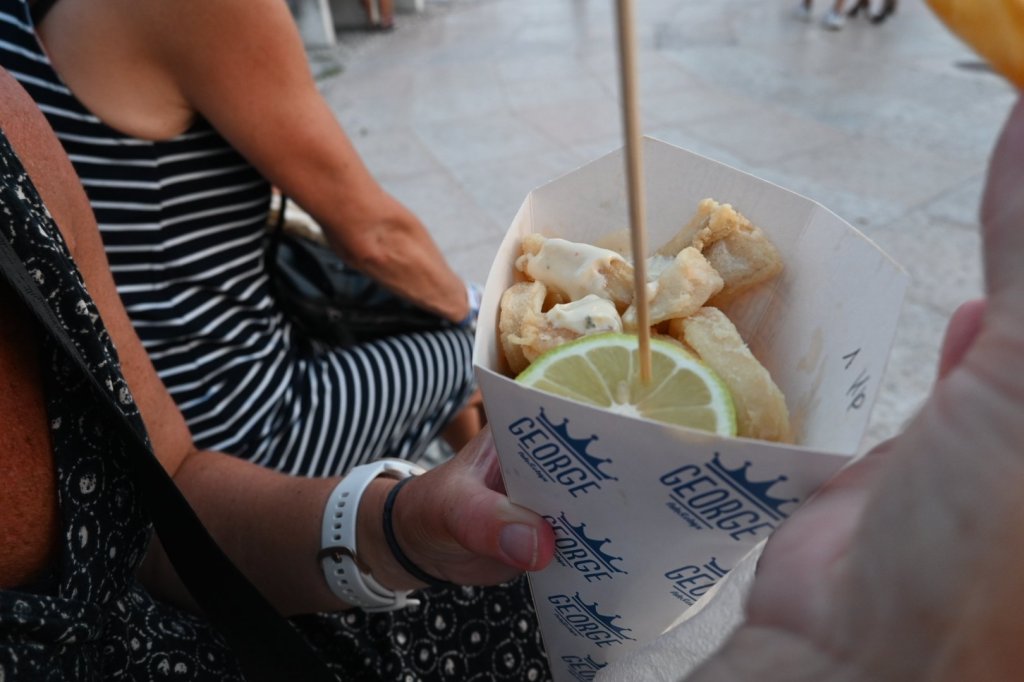 På kvällarna har vi inhandlat enkla måltider så som friterad Seafood I strut och pizza som vi ätit vid sjön i solnedgången.