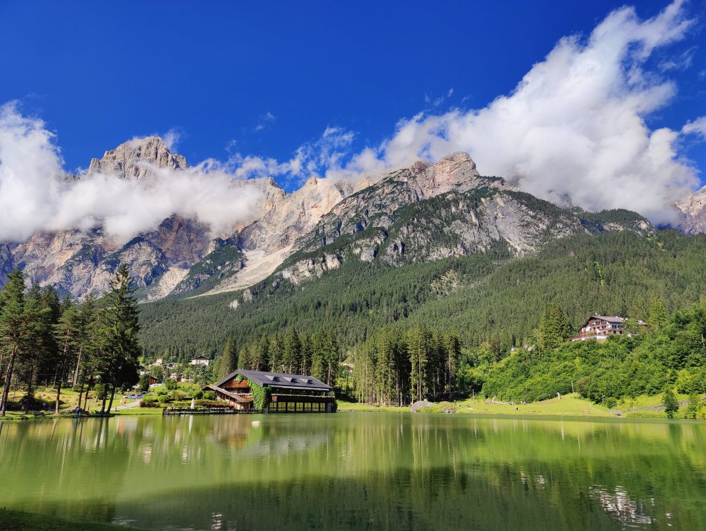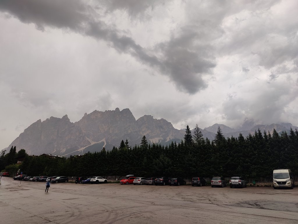 Så var det då dags att lämna dom varmare breddgraderna. Dags att börja resan över bergen. Målet var Cortina d’Ampezzo. Vi tänkte åka upp med liften till 3200 meters höjd. Vi slängde i oss lite lunch men då började det att ösregna och på radarn såg det mörkt ut, så vi bestämde oss för att inte åka upp, bortkastade pengar.