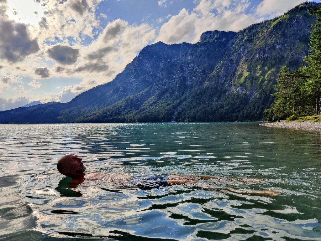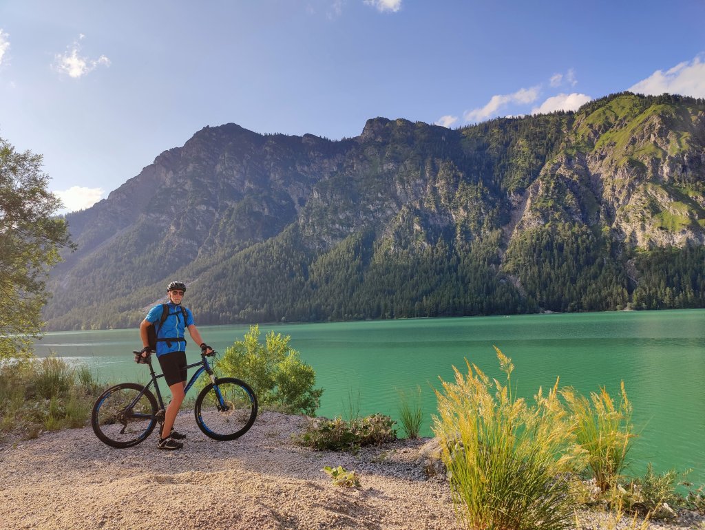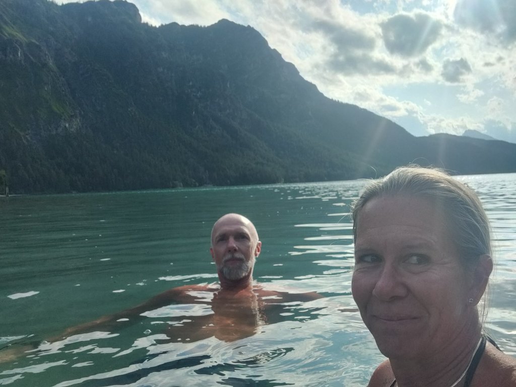 När vi kollade närmare fanns en sjö nära så efter lite bubbel packade vi ner badkläder och hoppade på cyklarna.