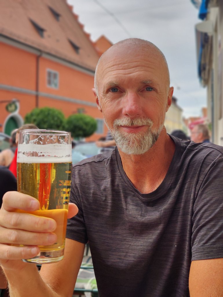 Tillslut hittade vi en pub och slog oss ner med varsin öl.