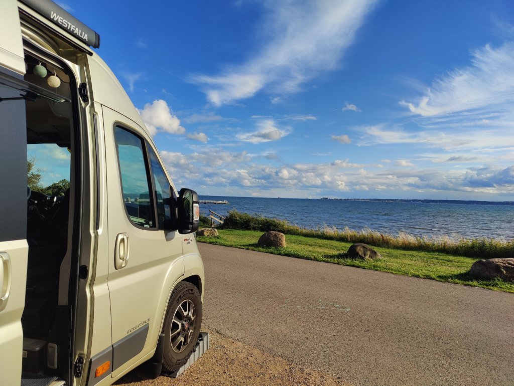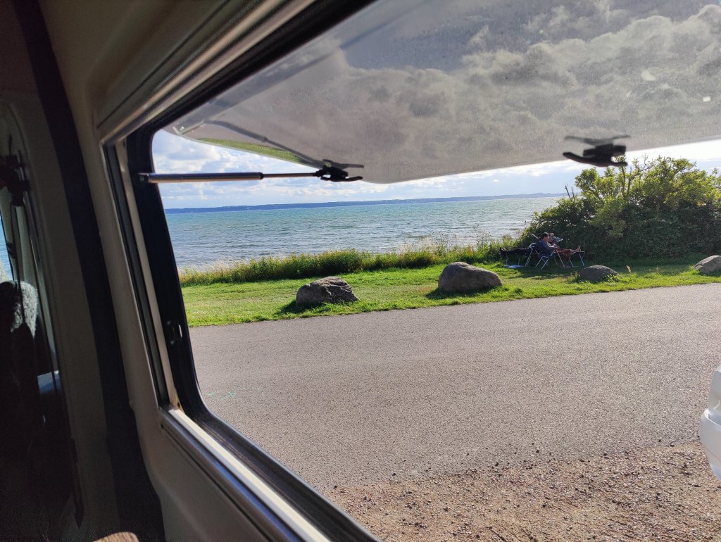 Det är ändå rätt skönt när man kommer på svensk mark igen. Det vi inte räknade med var att det skulle var så många husbilar i Laröd. Men vi som har en ”liten” bil kunde pressa in oss på en lite plats.