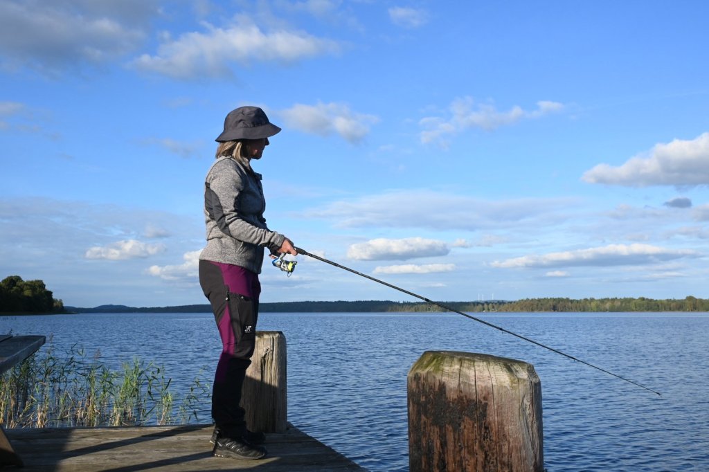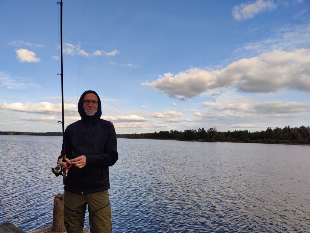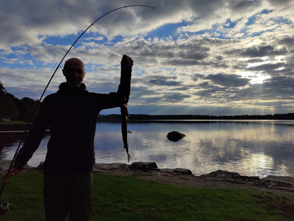 Efter andra kastet drog han upp en gädda, som åkte tillbaka ner i vattnet. Det var allt som nappade idag, förutom lite bottennapp ibland.
