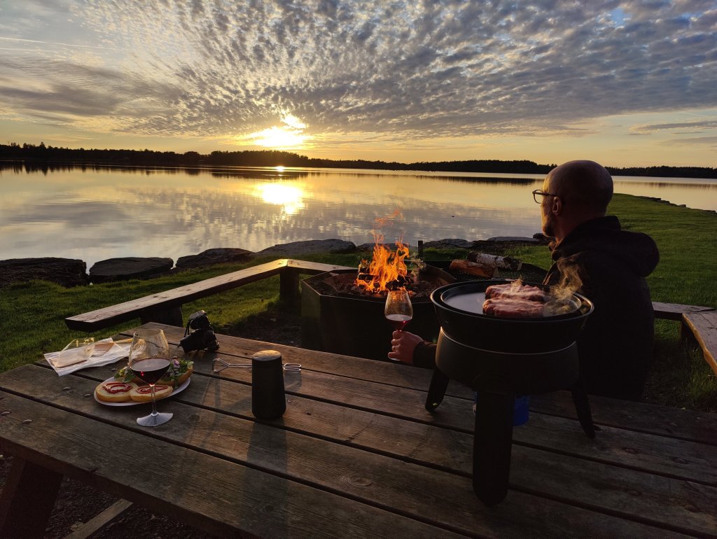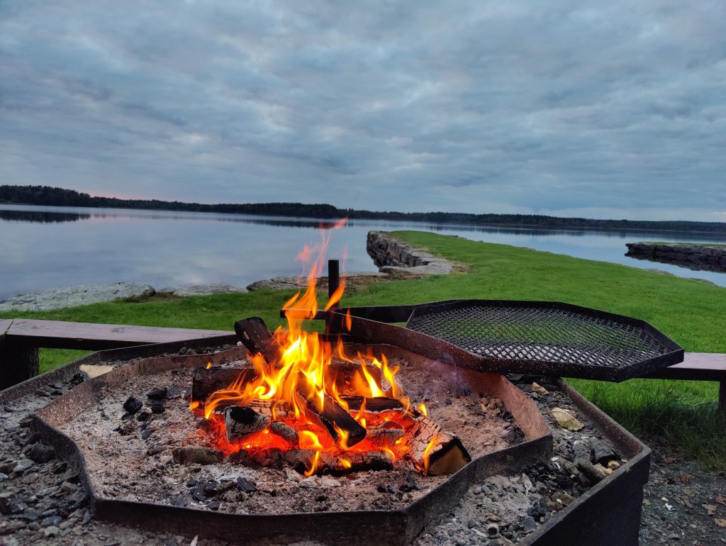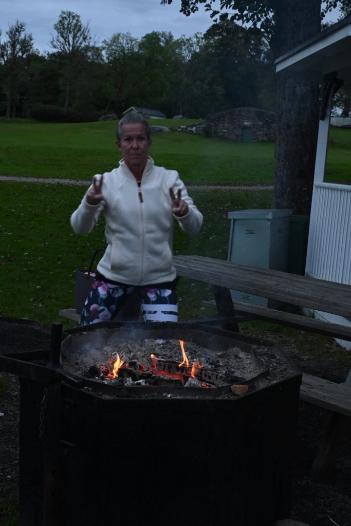 Vi packade om och fixade med oss för att tända en brasa och grilla hamburgare.