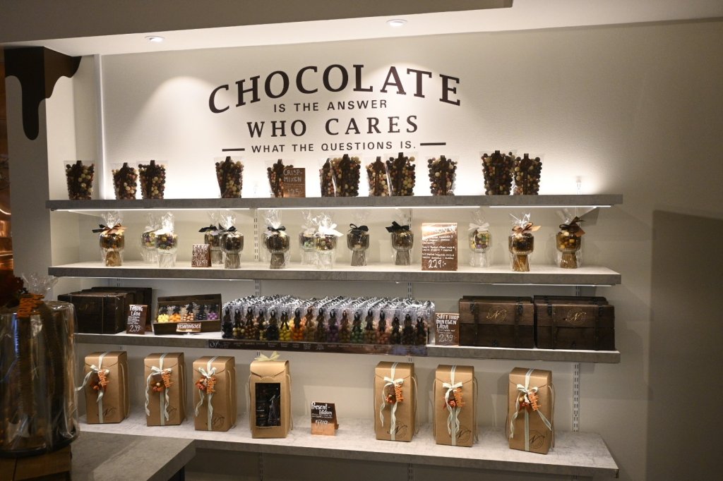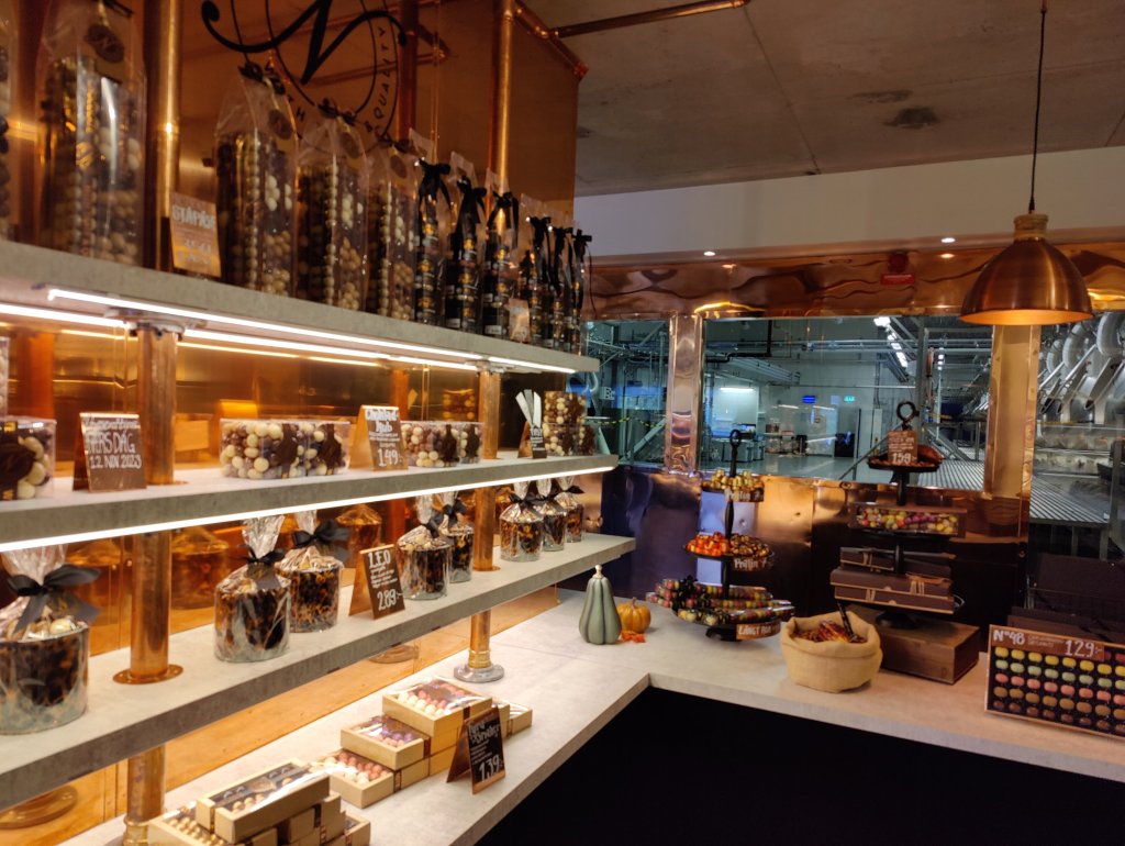 Här kommer vi nog stanna fler gånger, väldigt god choklad. Igenom fönstret på bilden ser man in i fabriken.