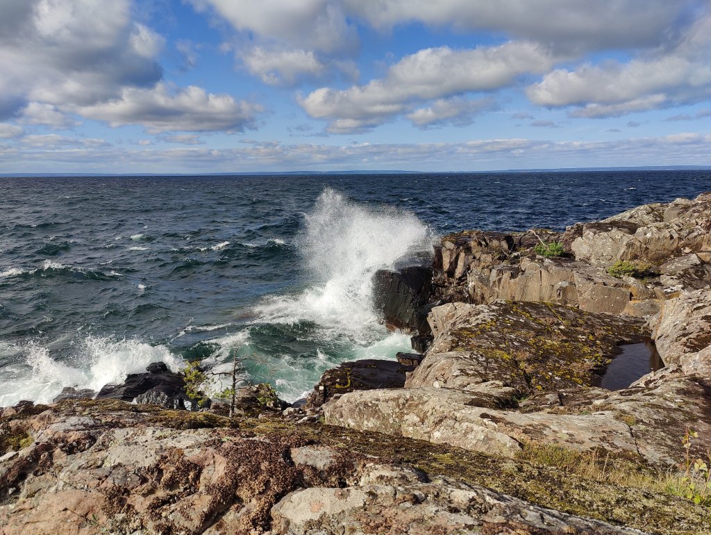 Vågorna slog högt och hårt in i klipporna på sina ställen.