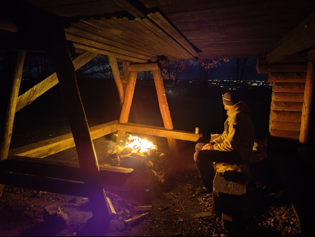 Vi hittade en plats med hyfsat vindskydd så vi kunde tända en efterlängtad brasa.