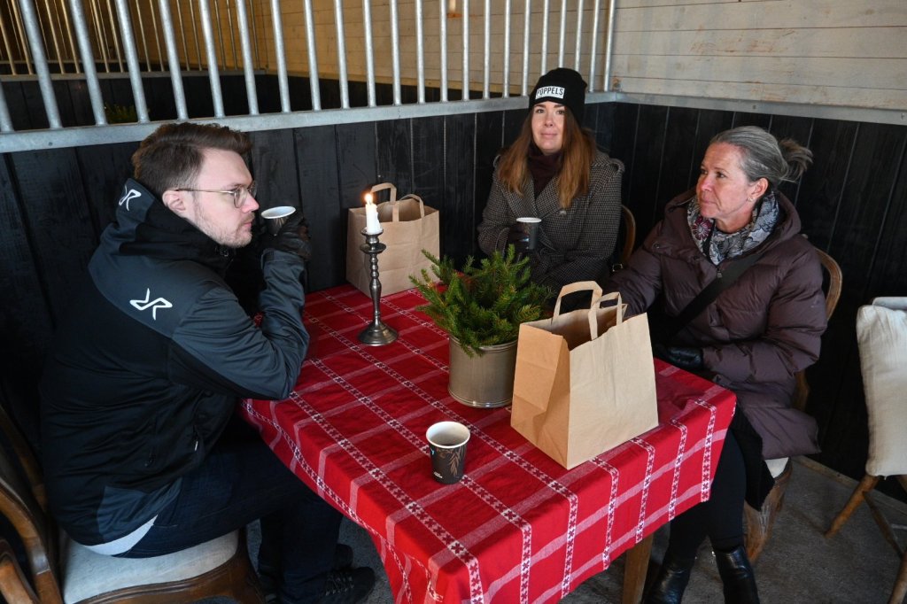 I ett gammalt stall fanns en servering av kaffe/ glögg och bullar.