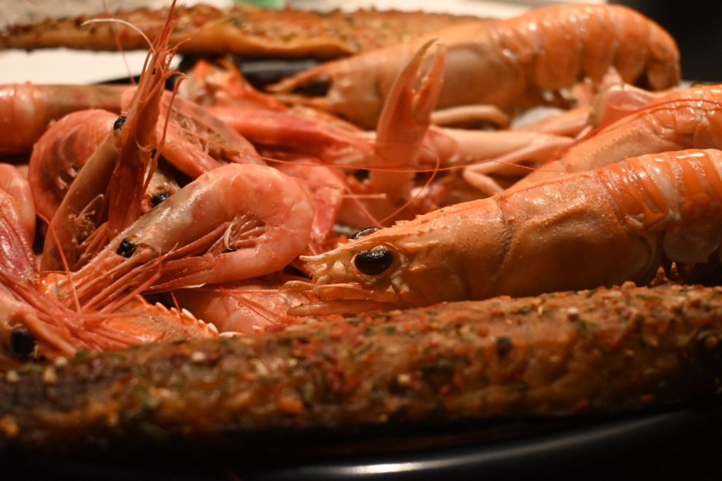 Till kvällens mat inhandlades lite räkor, havskräftor och rökt makrill i feske boa.