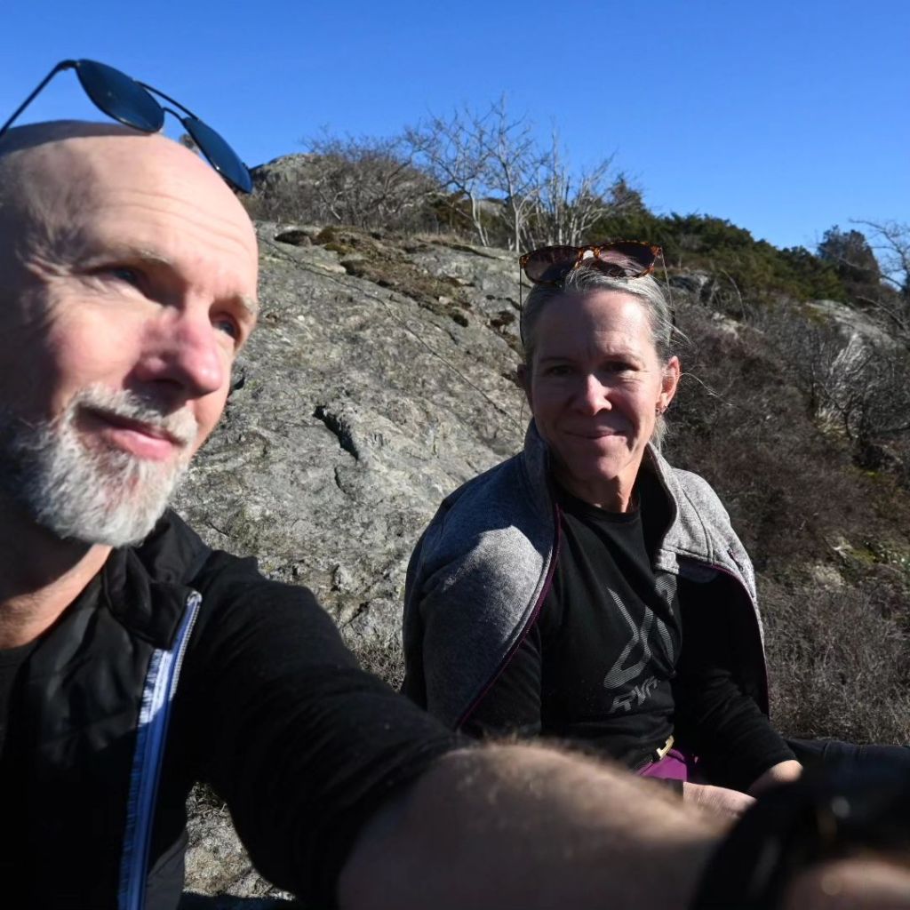 Första delen gick mycket bland klipporna och där är det ibland svårt att navigera då det inte alltid är självklart vart man ska gå . Peder brukar ladda ner vår planerade rutt till sin klocka och det har hjälpt oss många gånger, varningar om att vi är utanför rutten och kunna se om vi ska gå höger eller vänster.