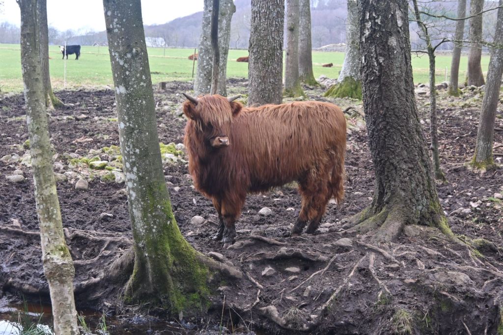 Tänk när löven spricker ut, längtar så, än så länge är det mycket bruna nyanser förutom mossorna som är gröna. Brun var även kossan vi mötte påvägen.