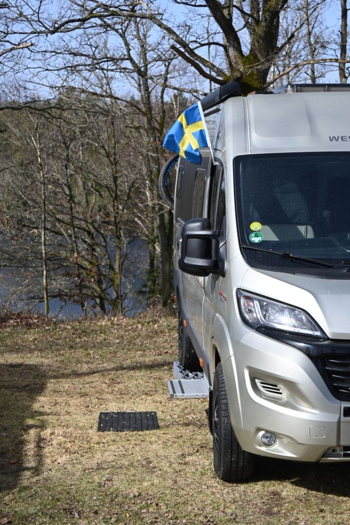 Nästa stopp blev Nyhagasjön badplats i Öinge. Fint anordnat med husbilsplatser.