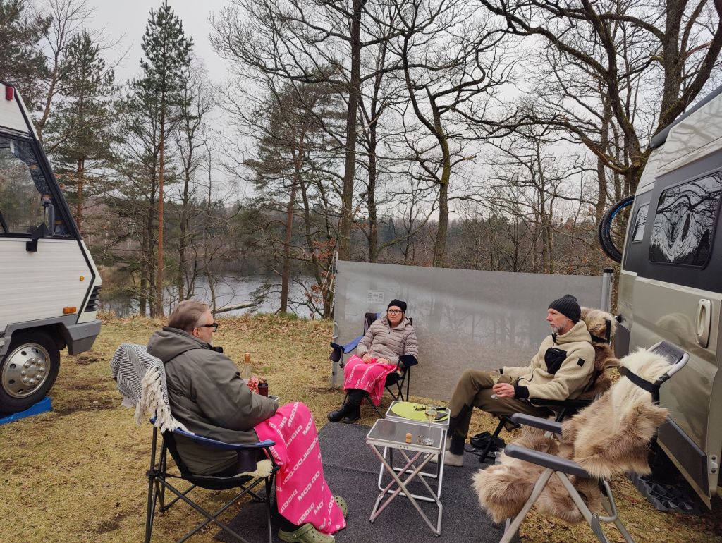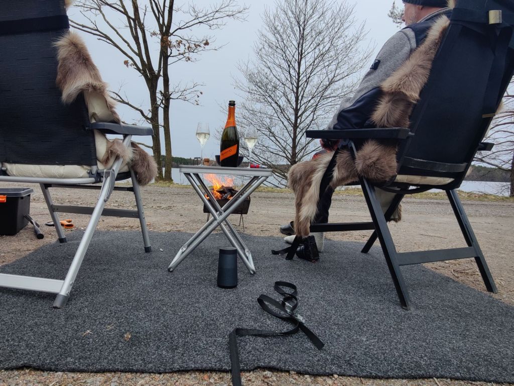 Med vindskydd och eld kunde vi sitta ute tills det mörknade.