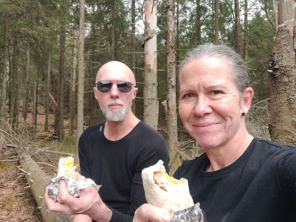 Vi kunde sitta en stund i solen och grilla till några korvar innan det mulnade på.