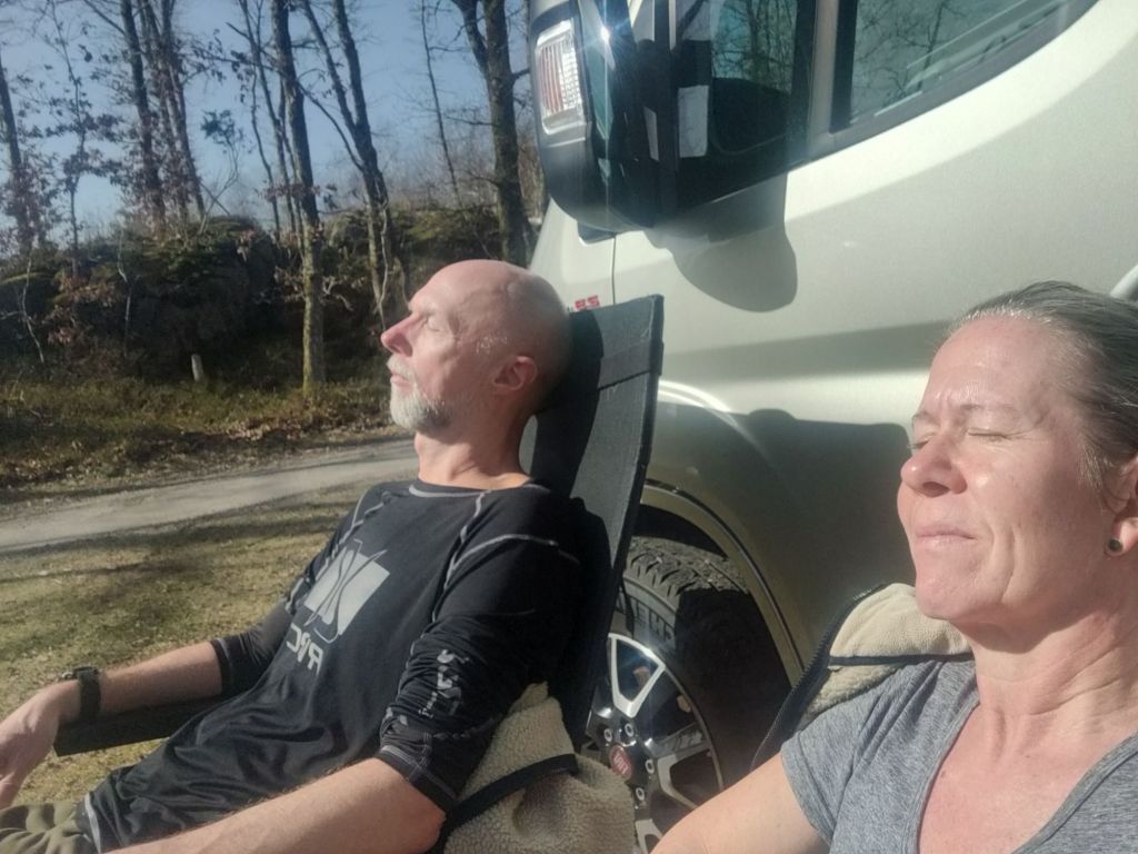 På hemresedagen kom solen, typiskt. Efter frukost satte vi oss i solen en stund innan vi åkte hemåt.