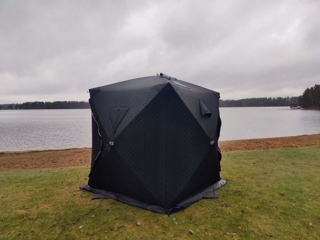 Sen var det dags för huvudtemat för helgen, att få testa bastutältet.
