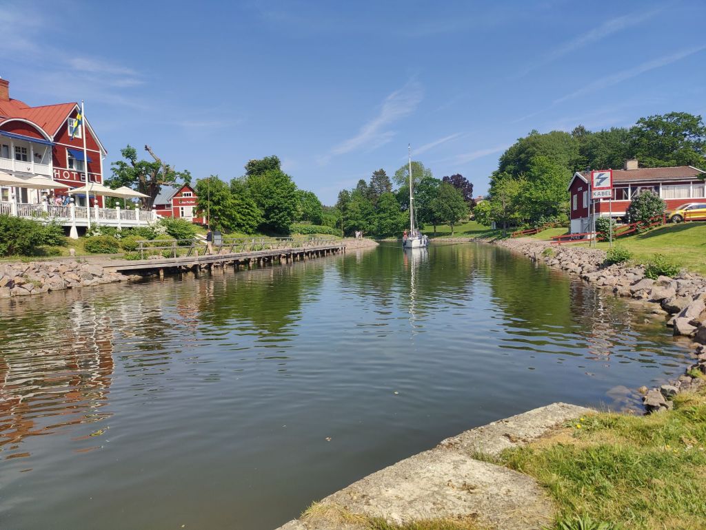 Dags för start, ingen trängsel då det inte kom så många båtar. När vi kom fram till slussen fick vi ta oss via landvägen och sjösätta igen på andra sidan.