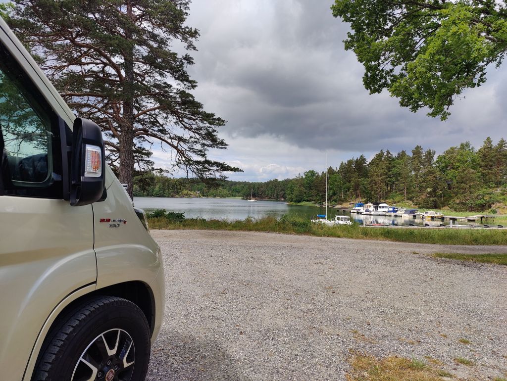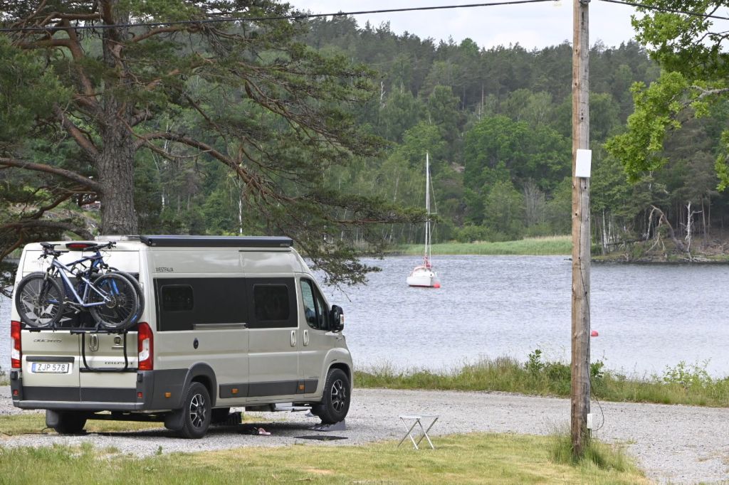 Eftersom vi åkt denna långa slingrande vägen ut i skärgården valde vi ytterligare en plats vi ville kolla in, ca 1 mil bort låg örnvikens camping/ställplats/ glamping. Bokade plats och for iväg