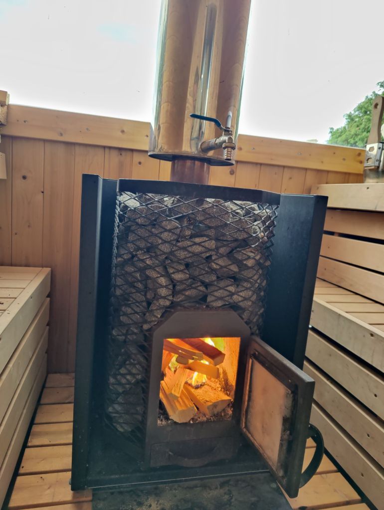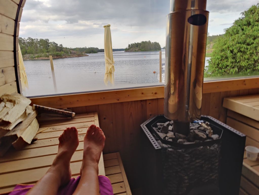 Väl framme började vädret vända och radarappen visade på ingående regnskurar. Efter lite velande beslutade vi oss för att boka bastun.