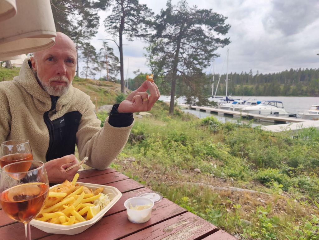 Strax bredvid ställplatsen fanns en foodtruck, ingen info om öppettider men när vi kom tillbaka var den öppen och vi delade på lite Fish and chips.