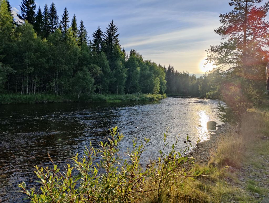 En perfekt plats vid en liten forsande älv.