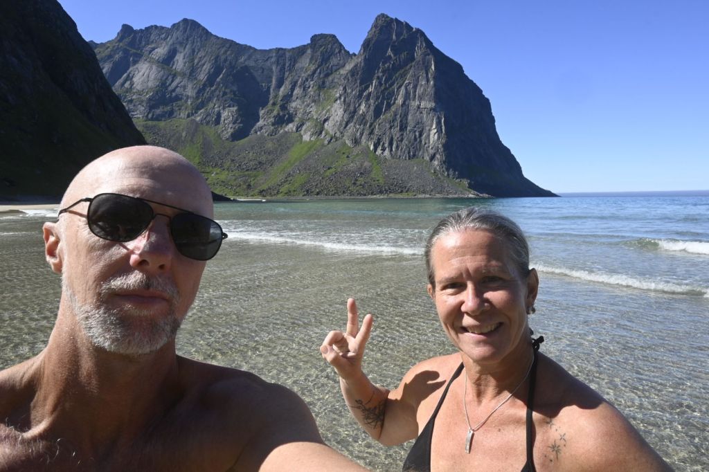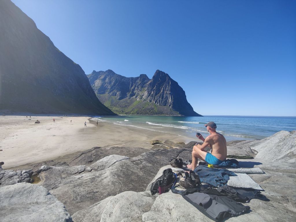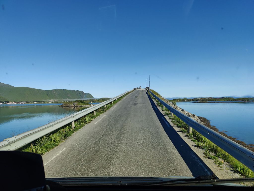 Klockan 22 rullade vi av färjan på Lofoten. Nu skulle vi bara hitta en plats att övernatta på. Här är trångt kan jag lova, det stod vans, husbilar och taktältare överallt på varje parkeringsficka. Som tur är så är det ju ljust dygnet runt så vi åkte sakta en bit upp.