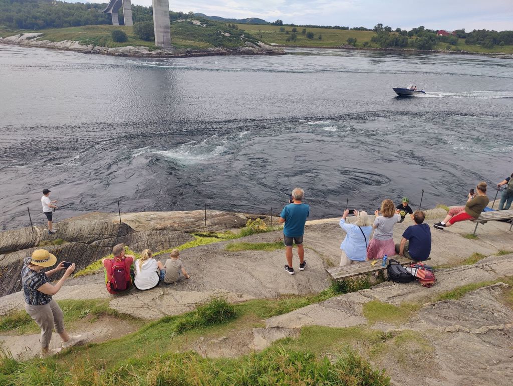 Vi hade missuppfattat informationen om när det var bäst att se strömmen och kom därför alldeles för tidigt. Men det var en varm och skön dag och när vi ändå var här måste vi ju se när vattnet forsar ut och alla virvlar bildas.