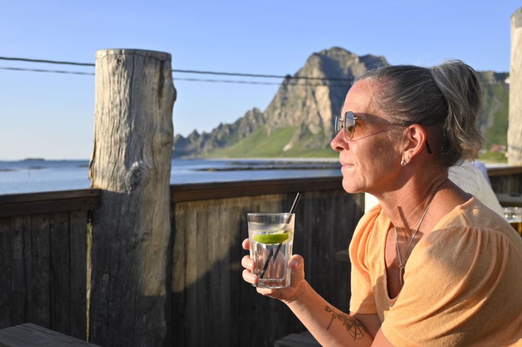 Så fantastiskt vackert och vädret var fortfarande med oss. Det fanns en badplats strax bredvid där vi tänkte oss ett dopp efter maten, men vi valde att köra vidare. Vi åkte inte ens ner till Henningsvear som var ett av våra mål på Lofoten då det var så otroligt mycket husbilar och svårt med parkering i dom små byarna. Stoppet för dagen blev vid Rolfs Bar.