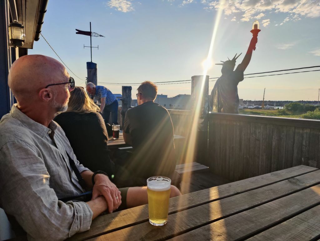 Vi pratade lite kort med en ung tjej som kom ensam på cykel för att övernatta och hon hade cyklat från Trondheim och skulle hela vägen till Nordkap, imponerande. Vi myste lite i solens sken och fick tips av ett annat svenskt par om Hurtigruten museet i Stokmarknes.